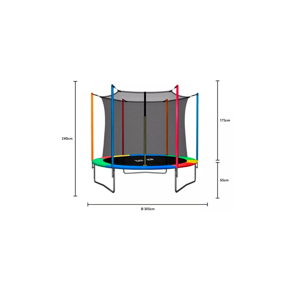 PRODUCTO: CAMA ELÁSTICA 10FT (3.05 metros) – BOUNCE® MÁXIMA SEGURIDAD – ESTRUCTURA GALVANIZADA EXTRA RESISTENTE. CAMA DISEÑADA PARA EL AIRE LIBRE. NUESTRA CAMA ELÁSTICA BOUNCE® ES CONSIDERADA LA MEJOR DEL MERCADO PRECIO-CALIDAD. COMPRÁ CON CONFIANZA. INCLUYE: RED DE SEGURIDAD + FUNDA DE PROTECTORA DE RESORTES + MANUAL DE INSTRUCCIONES MUY FÁCIL DE ARMAR, DESARMAR Y TRANSPORTAR. TIP AHORRO: ¡NO SE NECESITA ESCALERA! PRODUCTO FABRICADO BAJO LAS EXIGENTES NORMAS DE SEGURIDAD EUROPEA. CARACTERÍSTICAS TÉCNICAS DIMENSIÓN DIÁMETRO: 3,05 metros de diámetro (10FT) PESO DEL PRODUCTO: 38.5 kg DIMENSIONES DE LA CAJA CERRADA: 163 cm x 45 cm x 22 cm. PESO MÁXIMO DEL USUARIO: 120 kg SUPERFICIE DE POLIESTER: Ultra Resistente e Impermeable TELA CON FILRO DE RAYOS UV. RED DE SEGURIDAD CON CIERRE. OTRAS INFORMACIONES TÉCNICAS: 54 resortes – ULTRA RESISTENTES – PREMIUM. Altura de la red protectora: 1,75 m Altura del piso para subir a la cama: 65cm (No necesitas escalera!) Cantidad de patas: 3 Medida de caños estructurales: F38×1.2mm Medida de Caño de las patas: F38×1.0mm Medida de Resortes: Dia22*L130*3.0*25N Medida de Tubo de soporte red: F25×1.0mm, 6X2pcs