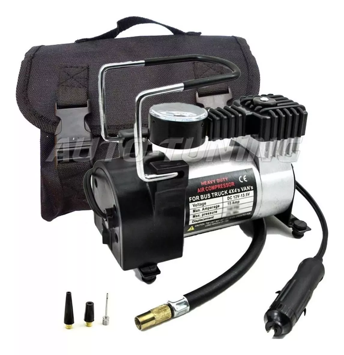 Acerca de Compresor Para Auto 12v 150psi 35lt/min Portátil Con Manometro Incluye 3 Picos El AV000011 es el modelo más práctico y eficiente en la categoría de compresores de aire. Ideales para usarse en bus, camión, 4×4, van, auto, cauchos pequeños, bicicletas y hasta pelotas. ¡Es el aliado ideal para siempre tener en tu vehículo!