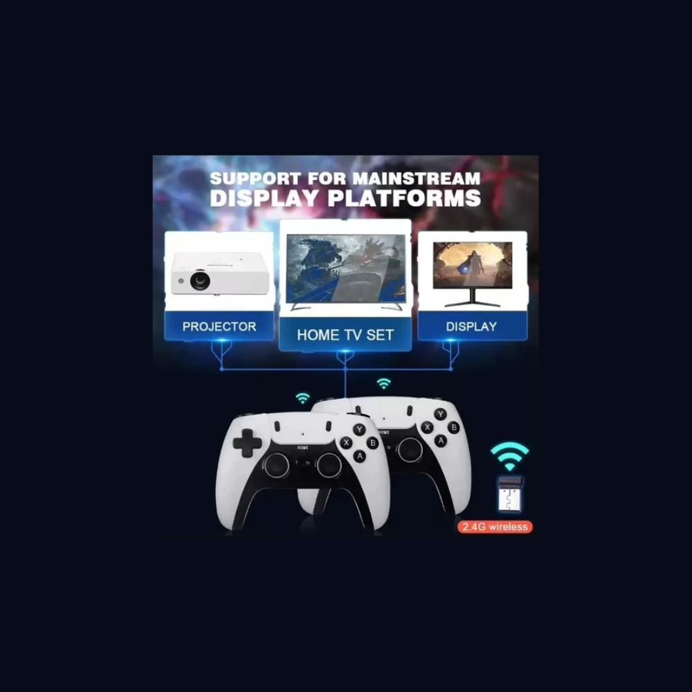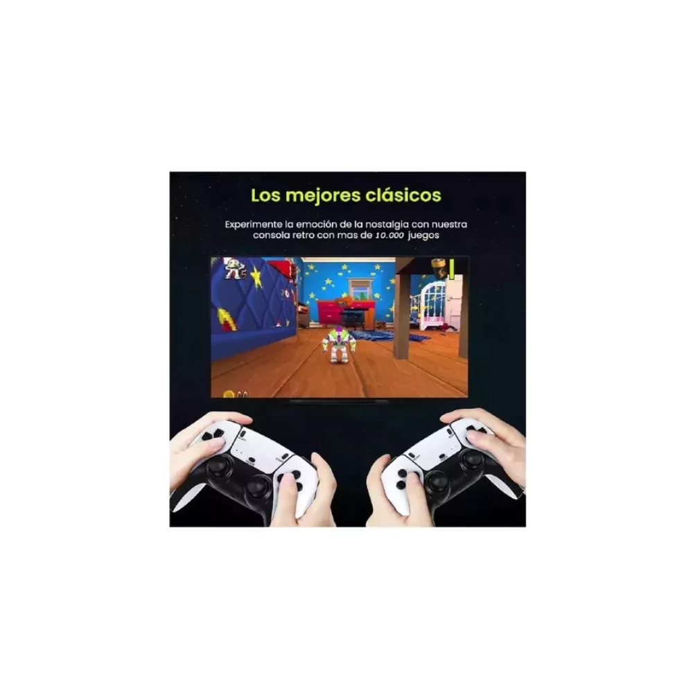 Su capacidad para juegos 3D más grandes brinda inmersión y emoción. Además, su calidad de imagen en 4K y resoluciones de hasta 1280×720 a 60FPS garantiza una experiencia visual impresionante. Incluye 2 controladores inalámbricos de 2.4 GHz para juegos multijugador sin cables. Compatible con más de 9 simuladores, como PS1, GBA, ARCADE, SNES y otros, te permite revivir tus juegos retro favoritos y explorar nuevos títulos. Una experiencia de juego versátil para todos los entusiastas de los videojuegos.
