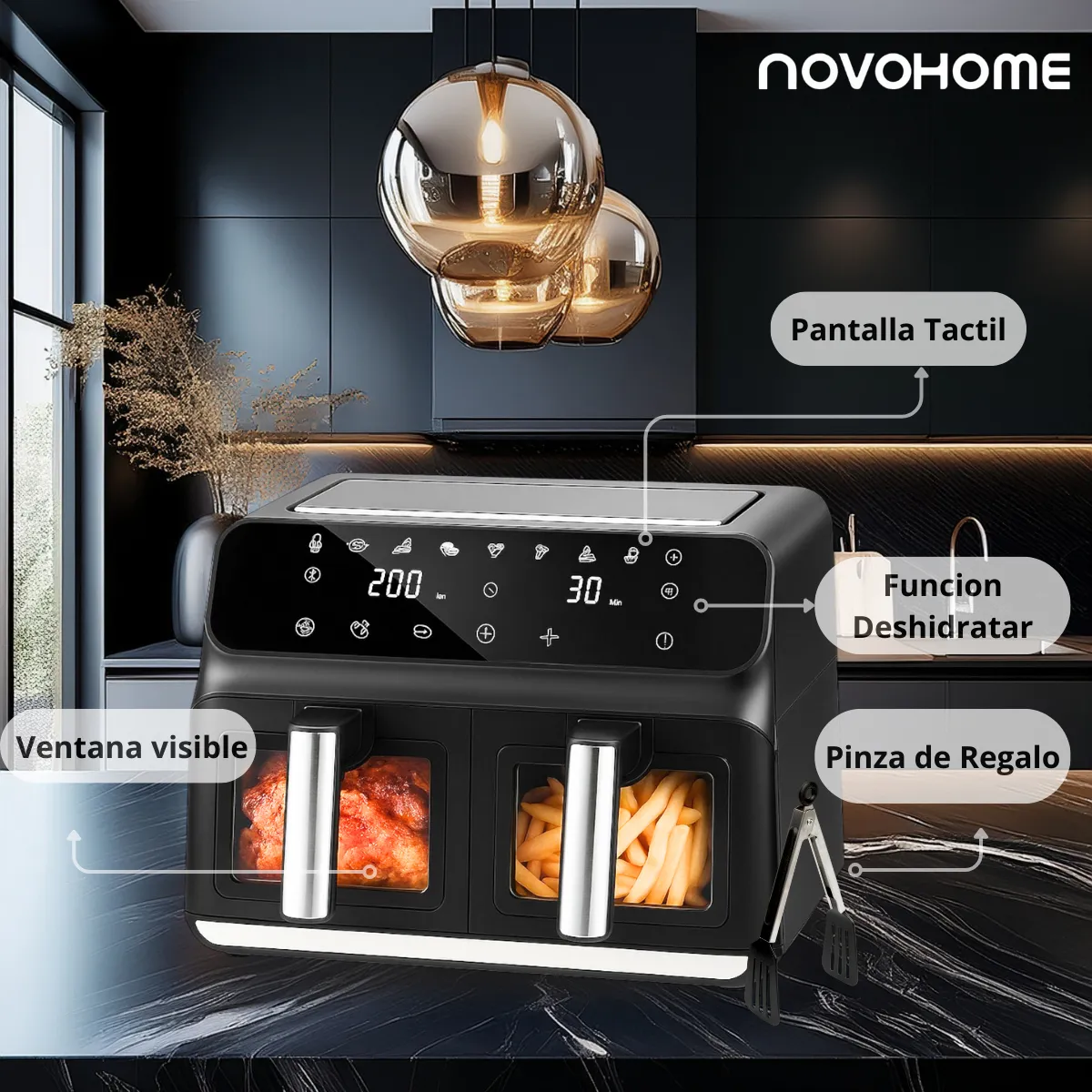 La freidora de aire Novohome NH-AF DUAL 220V es una solución versátil y moderna para preparar comidas saludables y sabrosas en menos tiempo. Con doble canasta y tecnología avanzada de circulación de aire caliente, permite cocinar diferentes alimentos al mismo tiempo, optimizando el tiempo en la cocina. Su diseño elegante y funcional facilita el manejo, con un panel de control intuitivo para ajustar tiempo y temperatura en cada canasta de forma independiente. Ideal para quienes buscan practicidad y un sabor increíble en cada plato, con un consumo mínimo de aceite.