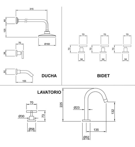Combo Griferia Peirano Adra Ducha Embutir Lavatorio Bidet (Pack 90-166)