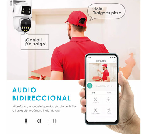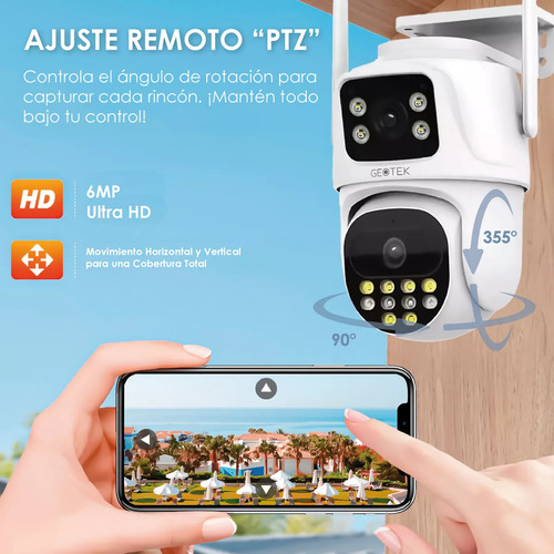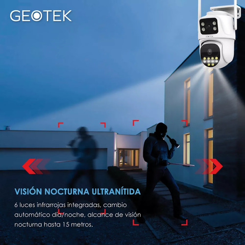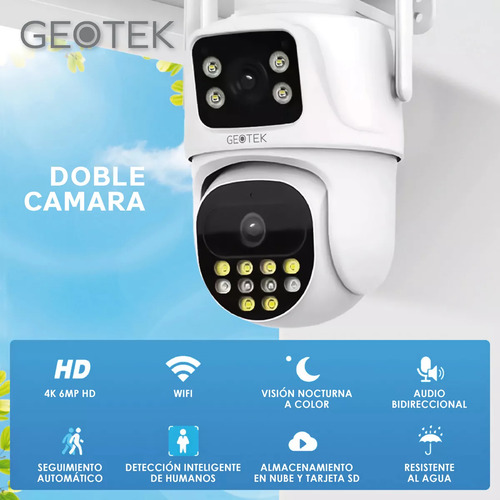Mantené tu hogar seguro en todo momento con la Cámara Domo de Seguridad Exterior Doble Lente GEOTEK P9 de 6MP. Equipada con detección de movimiento y visión nocturna, esta cámara te brinda una vigilancia confiable las 24 horas del día. Resistente a la intemperie y fácil de instalar.