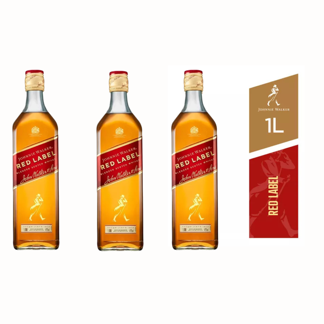 kit con 3 Whisky Johnnie Walker Red Label 1L