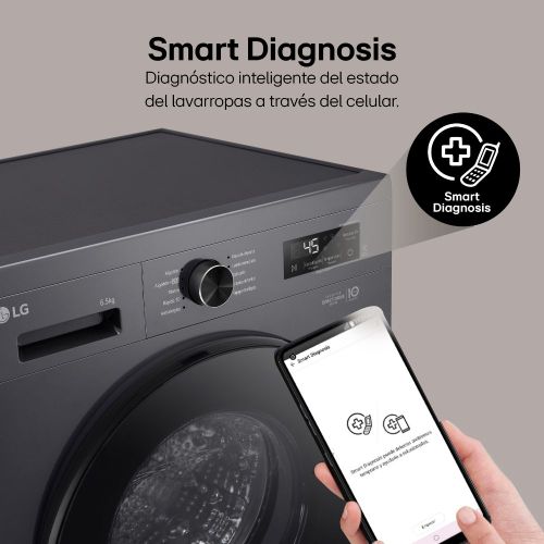 El lavarropas LG ofrece una capacidad de 6,5 kg y una potencia de centrifugado de hasta 1200 RPM, permitiendo que la ropa salga con menos humedad, reduciendo el tiempo de secado y mejorando la eficiencia en cada ciclo.