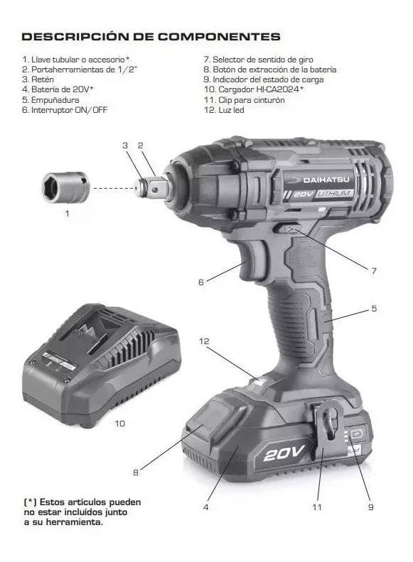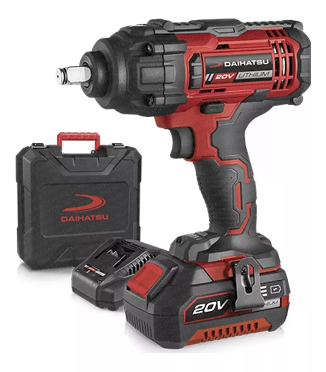 Llave de impacto de 20V – Diseño ergonómico – Función de avance y retroceso – Control de velocidad variable – Control de torque de 5 posiciones – Freno eléctrico “brake stop” – Luz de trabajo led – Voltaje 20 V (Li-ion) – Velocidad de impacto 0 – 3200 Bpm –