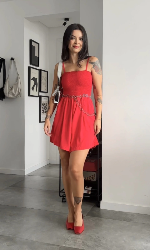 Confeccionado en 100% viscosa, este modelo ofrece una suavidad y frescura excepcionales. La correa ajustable permite un ajuste personalizado para mayor comodidad, mientras que el busto elástico asegura un soporte seguro y flexible. Las piernas anchas aportan un toque de elegancia y libertad de movimiento, haciendo de este modelo una opción ideal para cualquier ocasión.