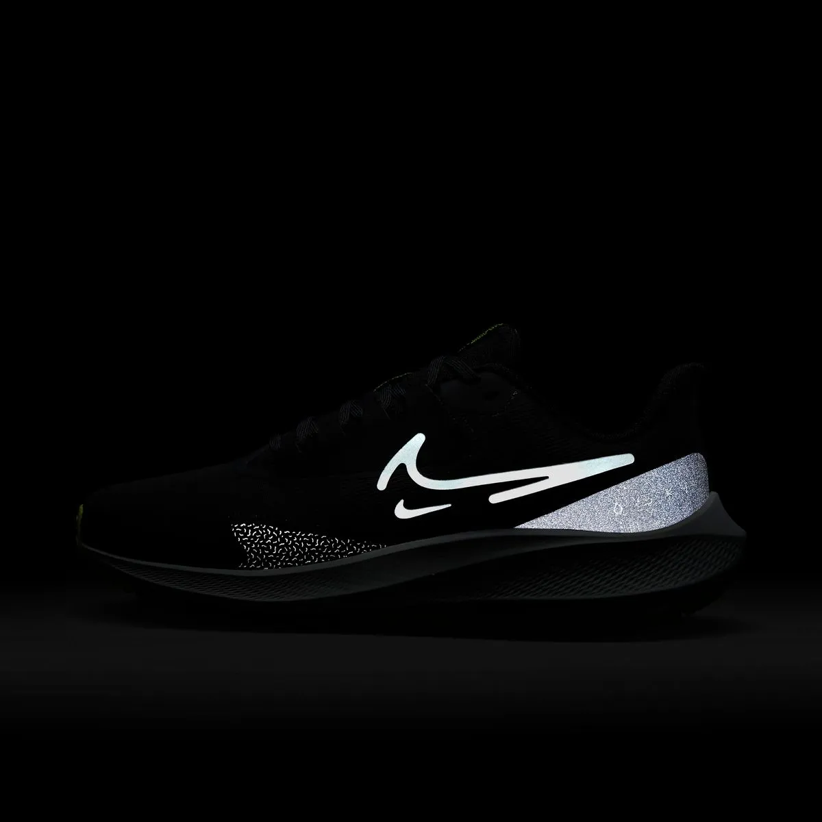 Tu caballo alado regresa para ayudarte a avanzar bajo la lluvia. El acabado repelente al agua te ayuda a mantener la transpirabilidad seca, mientras que una sensación cómoda, similar al tejido Fleece, en el interior mantiene los pies abrigados para carreras en climas inclementes. La tracción resistente y las dos unidades Zoom Air proporcionan agarre y amortiguación suave para que puedas potenciar el mal tiempo….