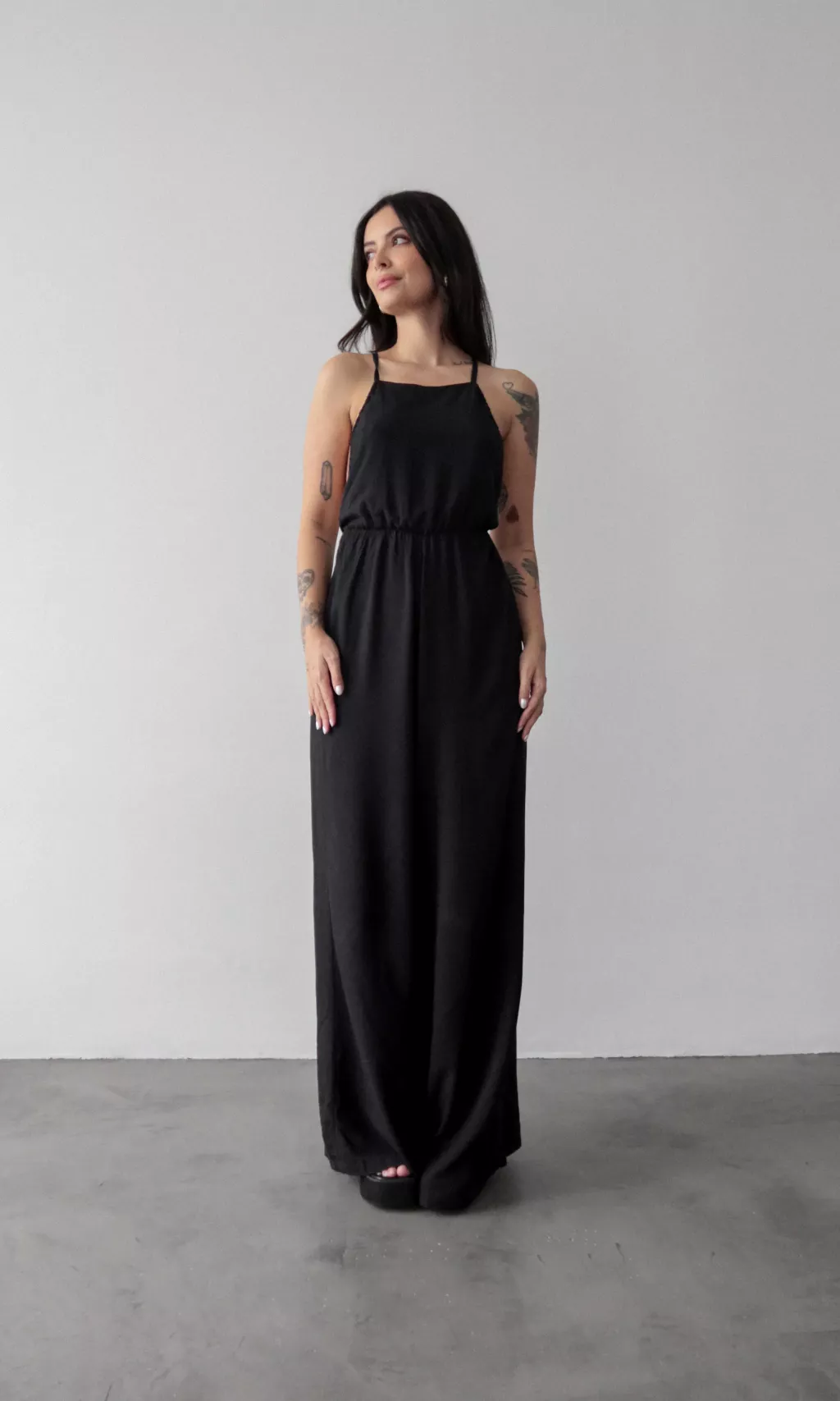 Confeccionado en 100% viscosa, este modelo ofrece el equilibrio perfecto entre comodidad y estilo. Las tiras ajustables con amarre en la parte posterior permiten un ajuste personalizado, mientras que el elástico en la cintura asegura un ajuste perfecto. El detalle del elástico en los costados del busto garantiza mayor seguridad y soporte sin sacrificar la comodidad. Las piernas amplias aportan un toque de sofisticación y libertad de movimiento, haciendo de este modelo una opción ideal para diversas ocasiones.