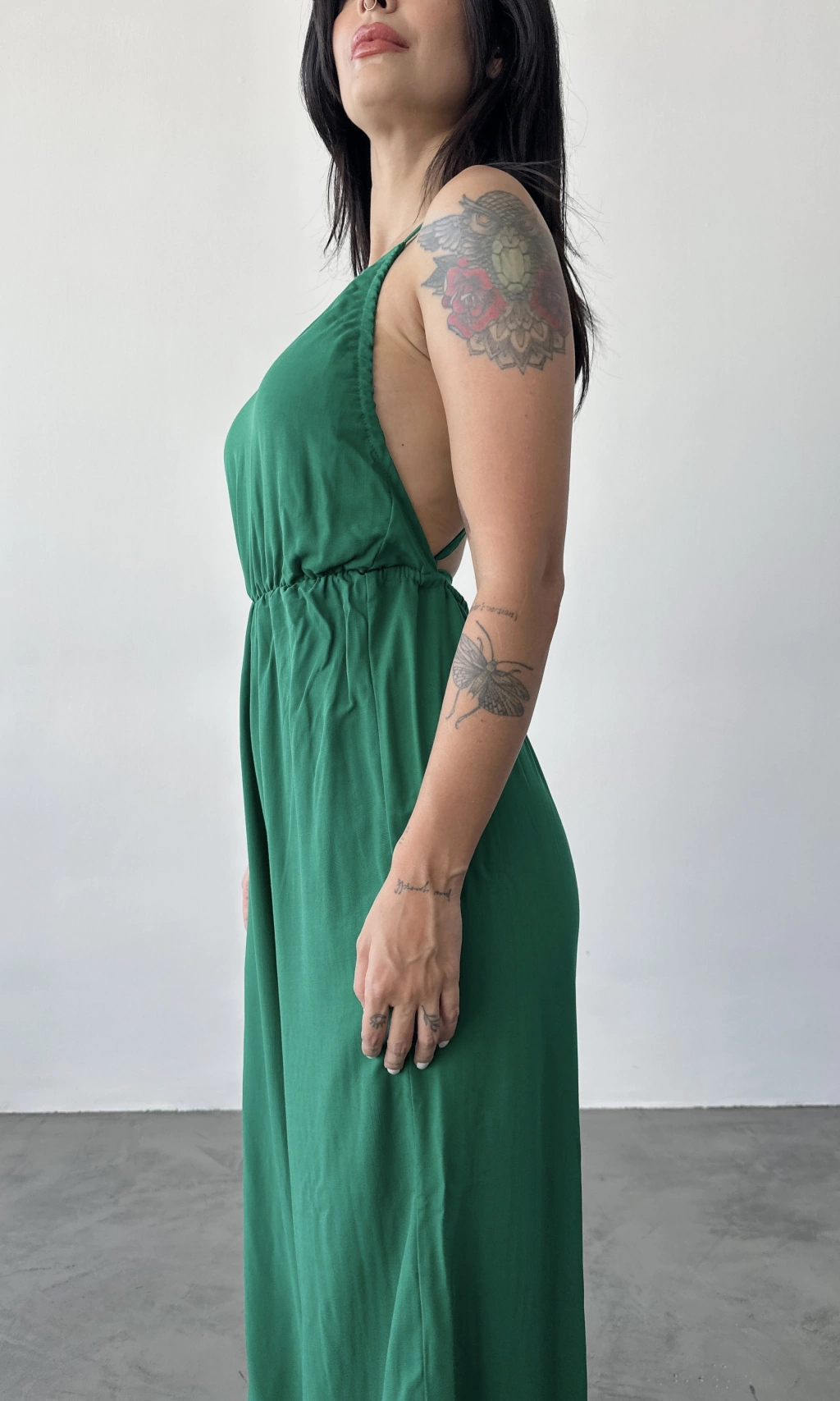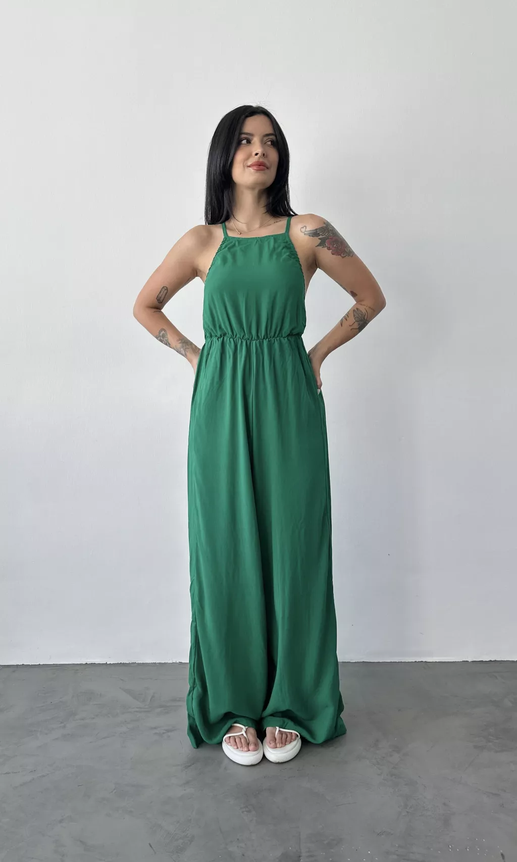 Confeccionado en 100% viscosa, este modelo ofrece el equilibrio perfecto entre comodidad y estilo. Las tiras ajustables con amarre en la parte posterior permiten un ajuste personalizado, mientras que el elástico en la cintura asegura un ajuste perfecto. El detalle del elástico en los costados del busto garantiza mayor seguridad y soporte sin sacrificar la comodidad. Las piernas amplias aportan un toque de sofisticación y libertad de movimiento, haciendo de este modelo una opción ideal para diversas ocasiones.