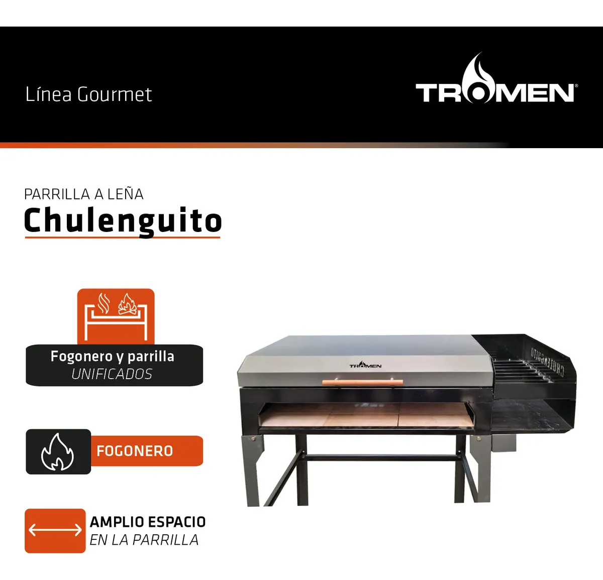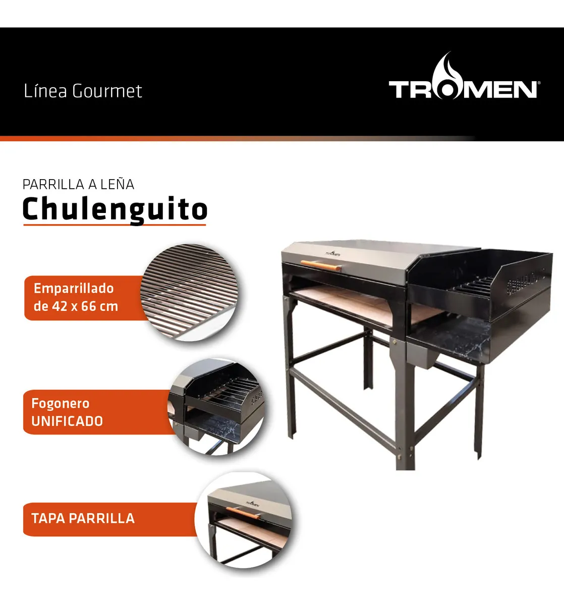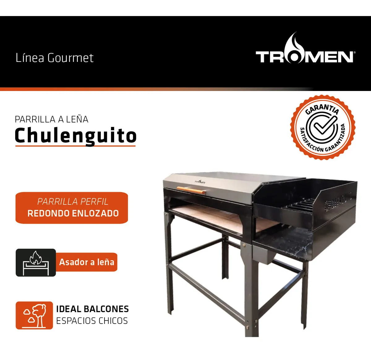 ¡Cociná con gusto! Esta parrilla Tromen será tu aliada para agasajar a tus comensales y recibir todos los aplausos. Con ella podrás preparar los mejores cortes y las verduras más deliciosas de una manera práctica y cómoda. Encendé el fuego y comenzá a disfrutar ¡Llevá tu asador a donde quieras! Trasladalo fácilmente hacia el patio y disfrutá de un rico asado al aire libre. Dimensiones: ANCHO(CM) 97 ALTO(CM) 101 PROF.(CM) 65 PESO 37 Características: Emparrillado y fogonero enlozados. Tapa con manija y base con ladrillos refractarios.