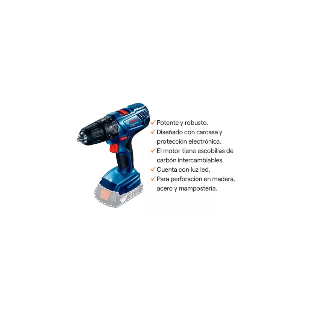 • El Taladro Atornillador de Impacto de ½” Bosch – GSB 180-LI 18V, es la herramienta con una fuerza de torque de 54Nm, que permite que el profesional realice el cambio de las escobillas de carbón, por su cuenta, garantizando más practicidad y ahorro con mantenimiento.